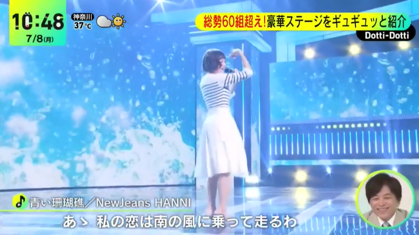 뉴진스의 도쿄돔 방송이 연일 일본의 아침방송에서 소개가 되고 있습니다. 그리고 하니의 푸른산호초 무대를 보는 일본 연예인들의 반응이 인상적인데요.